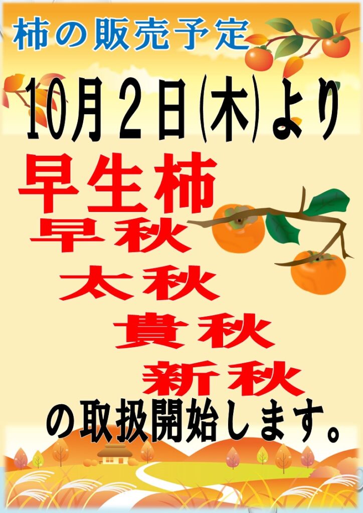 10月2日(木)より、早生柿の取り扱いを開始いたします。