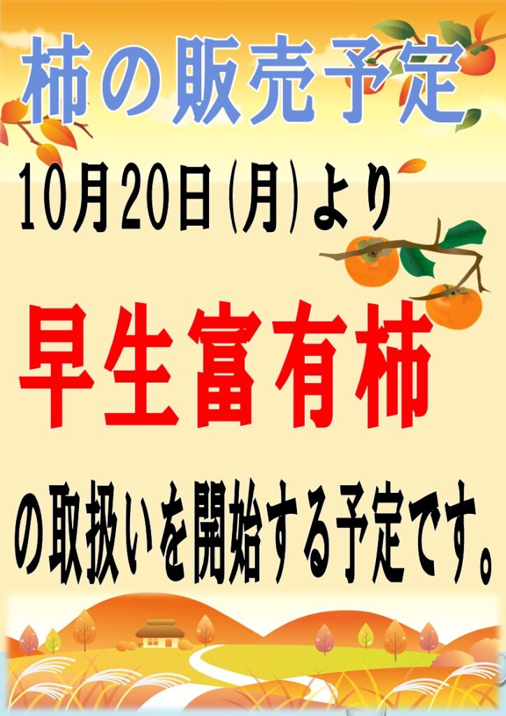 10月20日(月)より、早生富有柿の取り扱いを開始いたします。